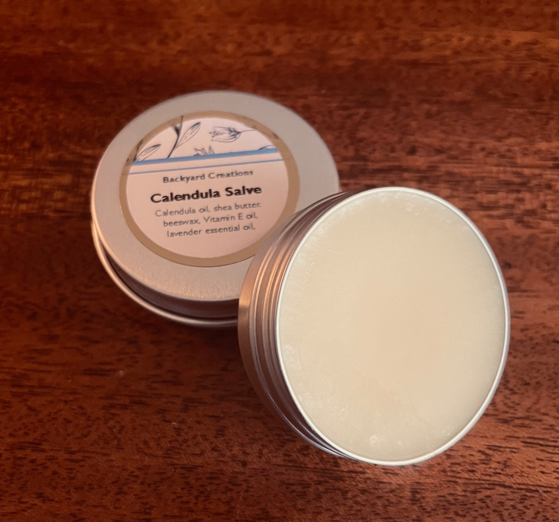 small batch salve made with calendula infused oil, beeswax, shea butter, lavender essential oil used for all kinds of skin irritations