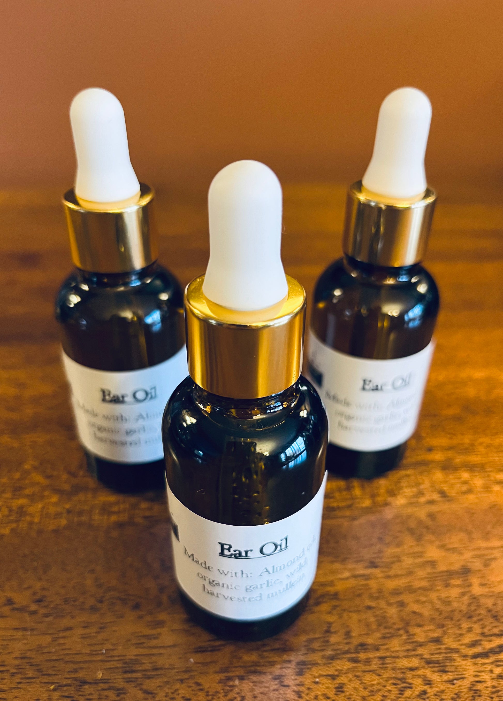 A blend of organically grown garlic at Backyard Creations and wild harvested mullien infused in almond oil for optimum absorption for that nasty ear ache.